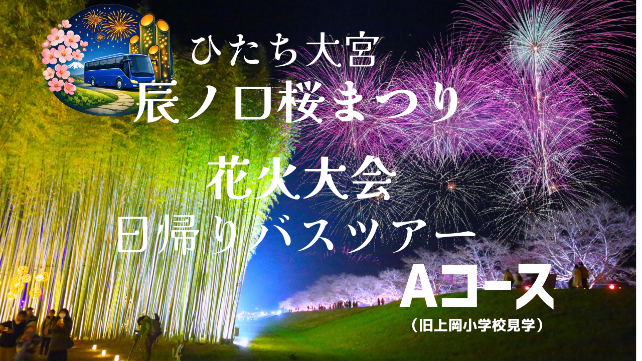 たびっとバス車庫/水戸駅/勝田駅夜桜花火の宴と春宵に輝く龍の竹林 IN常陸大宮 Aコース久慈川沿い、約1.3㎞の桜堤に約130本の桜が咲き誇る景色は圧巻です。菜の花との競演も美しく、ライトアップされた美しい夜桜が見られます。また、放置竹林を整備し創り上げた、全長500mの竹あかりライトアップもご覧いただけま […]5,500円2026.04.04 -