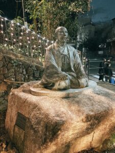正室のねね様もいつも一緒に来ていたそうで、ゆかりのあるこの二人の像が有馬温泉街におかれています。