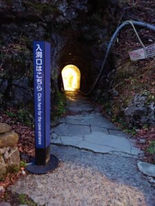 この小さな入口から洞窟内へ入り880m歩いたところに滝がある珍しい鍾乳洞なんだそうです。