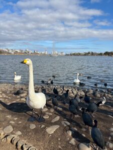 この湖には白鳥が飛来し、この日もたくさんの白鳥が来ておりエサ欲しさに人だかりの近くまで来ていました!!