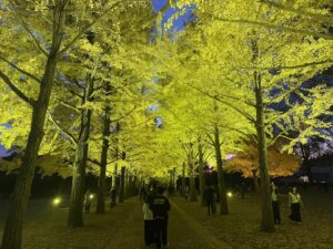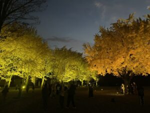 今年は11/1から11/24までイチョウ祭りが開催され、期間中は紅葉のライトアップも楽しめます。